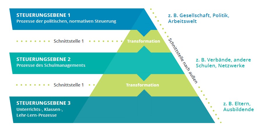 Durch die gesellschaftlichen Entwicklungen in den vergangenen Jahrzehnten haben Schulen immer mehr Eigenverantwortung übernehmen müssen, um auf die wachsenden Veränderungen im Schulbetrieb reagieren zu können und eigene Profile und Strukturen aufzubauen. Dadurch hat der dezentrale Steuerungsansatz zunehmend an Bedeutung gewonnen. Anknüpfend daran haben Walter Goetze und Annikka Zurwehme den Begriff „Steuern auf Abstand“ eingeführt. Damit beschreiben sie das Zusammenwirken der verschiedenen Ebenen, die „auf Abstand“ miteinander und zueinander agieren: