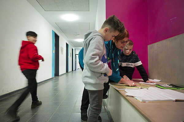 Auch ein orientierungsstiftender Rahmen mit entsprechenden Ritualen, Unterstützungssystemen und festen Abläufen ist integraler Bestandteil des Lernzeiten-Konzepts in Lohmar. Moderiert durch eine Schülerin oder einen Schüler hat die Lernzeit deshalb einen festen Ablauf und gliedert sich in Auswahlphase, Arbeitsphase, Reflexionsphase und Aufräumphase. In der Auswahlphase entscheiden sich die Lernenden für einen „Lernjob” und legen alle benötigten Materialien bereit. Dieser dient als Arbeitsgrundlage, beschreibt den Arbeitsauftrag klar und verständlich und bietet verschiedene Zugänge und Lernniveaus. Das gewählte Lernvorhaben wird dann im sogenannten „Wochenplaner” notiert und nach Ablauf der Arbeits- und Aufräumphase reflektiert. Der Planer bietet den Lernenden somit die Gelegenheit, das eigene Lernverhalten zu analysieren und entsprechende Schlüsse für zukünftige Vorhaben zu ziehen. Sollte während des Arbeitsprozesses Hilfe benötigt werden, kann durch ein Helfersystem mit Namensklammern um Unterstützung durch eine:n Lernpartner:in oder die Lehrkraft gebeten werden. Lehrkräfte werden somit in den Lernzeiten verstärkt zu Lernbegleiter:innen, die vornehmlich Hilfestellung beim Organisieren der „Lernjobs“ leisten, gezielt beraten und Lernerfolge herausstellen.
