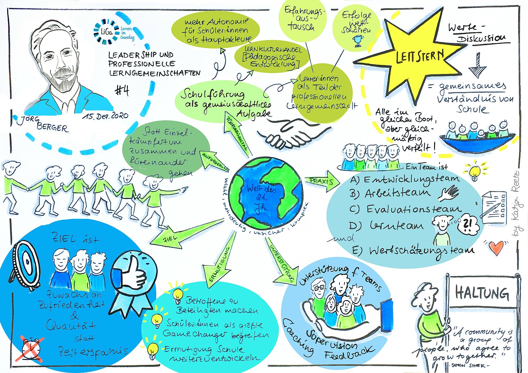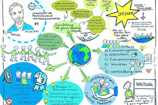 Eine zeitgemäße Schule strebt nach Autonomie der Schülerinnen und Schüler und integriert ausdrücklich Schlüsselkompetenzen des 21. Jahrhunderts in ihre Programme. Dabei geht es nicht in erster Linie um die Digitalisierung von Unterricht und Schule, sondern vielmehr um einen (digitalen) Lernkulturwandel. Die dazu passende pädagogische Schulführung lässt sich nicht länger allein denken. Sie muss gemeinschaftlich erfolgen. In einer zeitgemäßen Schule, wie ich sie mir vorstelle, lernen die Lehrerinnen und Lehrer gemeinsam, initiieren Entwicklungen durch Selbstgestaltung, planen in Kooperation Kurse, sprechen miteinander über ihre Erfahrungen in der Lernberatung und wertschätzen ihre Zusammenarbeit und Erfolge gebührend.